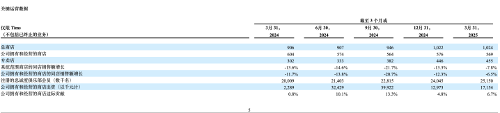 截图自Tims2025年一季度财报